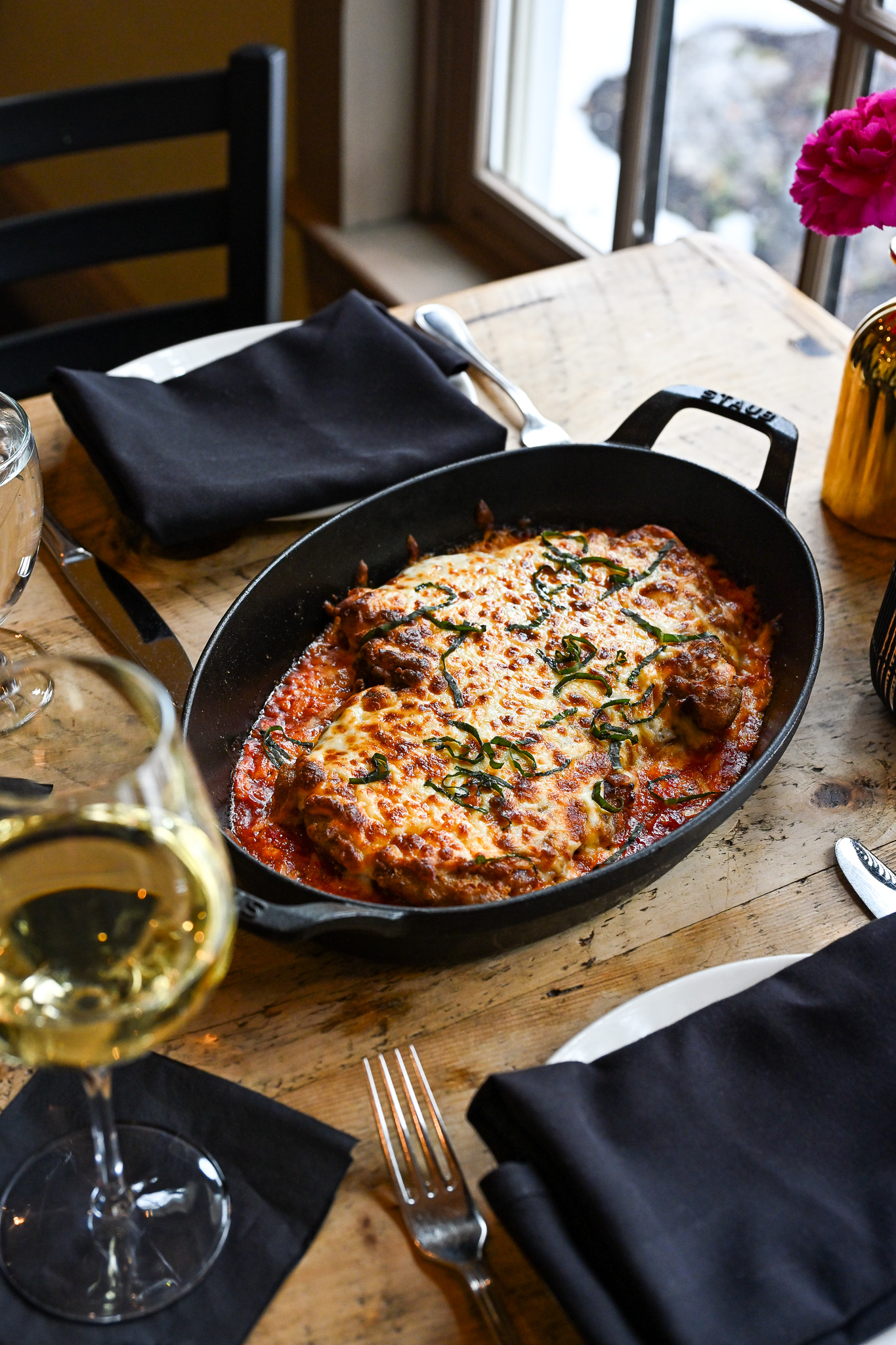 Our server, Laura, recommends pairing the Chicken Parmesan with the Nebbiolo currently featured on the Red Lion Tavern curated wine list.