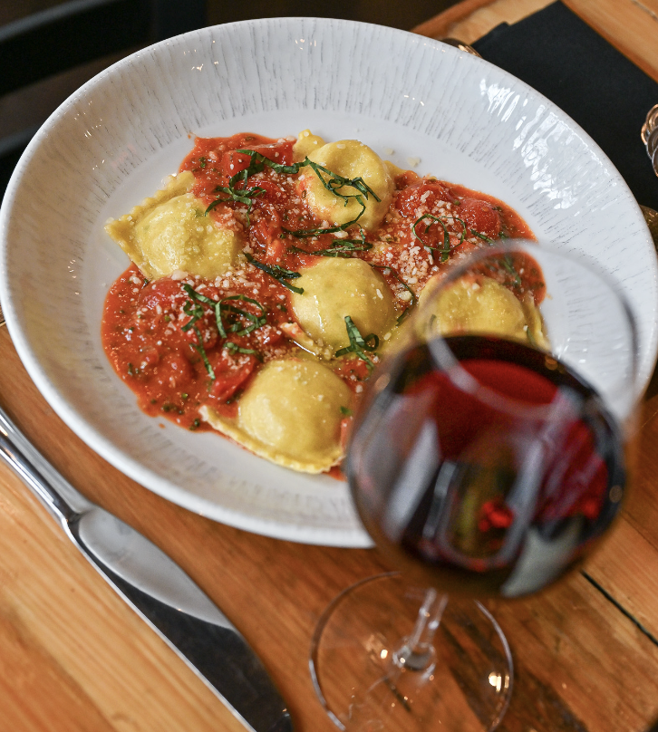 The Chicken Parmesan is served a la carte and I strongly suggest adding the new Three Cheese Ravioli for a pasta addition. This homemade pasta starter is filled with a trio of mozzarella, parmesan, and ricotta, that is dressed simply with olive oil, salt, and pepper. The sauce is a vibrant blend of toasted garlic, Sorrentina tomato sauce, cherry tomatoes, and a touch of butter, enhancing the ravioli’s delicate flavors with a burst of bright flavor.
